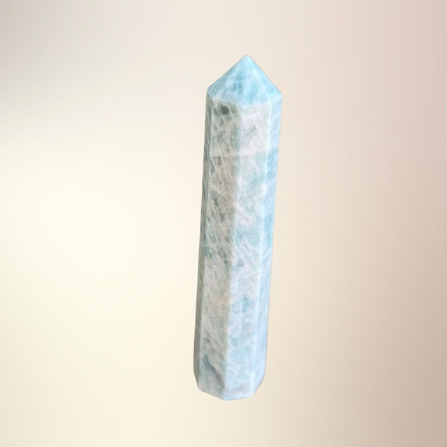 I tårnform forstærkes amazonittens energi og rettes opad, hvilket gør den ideel til intention, fokus og renselse. Tårnet kan placeres på alteret, skrivebordet eller i et energihjørne, hvor det skaber ro og klarhed.