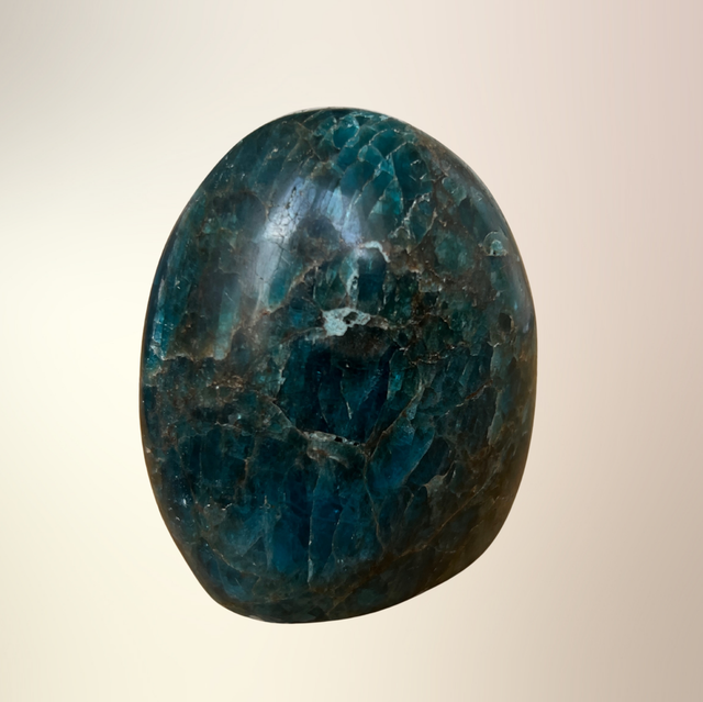 Denne levende blå apatit er udvalgt i høj kvalitet og formet som en stående freeform – med et naturligt farvespil i havblå, turkise og dybe indigo toner. Blå apatit er kendt for sin evne til at styrke kommunikation, åbne halschakraet og fremme spirituel klarhed. Den støtter indre sandhed, intuitiv kontakt og modet til at udtrykke sig ærligt og autentisk.