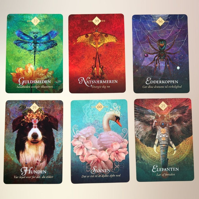 Når du trækker et kort, åbner du for et budskab, der kan støtte dig i at navigere livets skift, overvinde begrænsninger og genopdage dit indre potentiale. Kraftdyrene fungerer som spirituelle vejvisere og hjælper dig med at tune ind på din intuition og dybere sandhed.