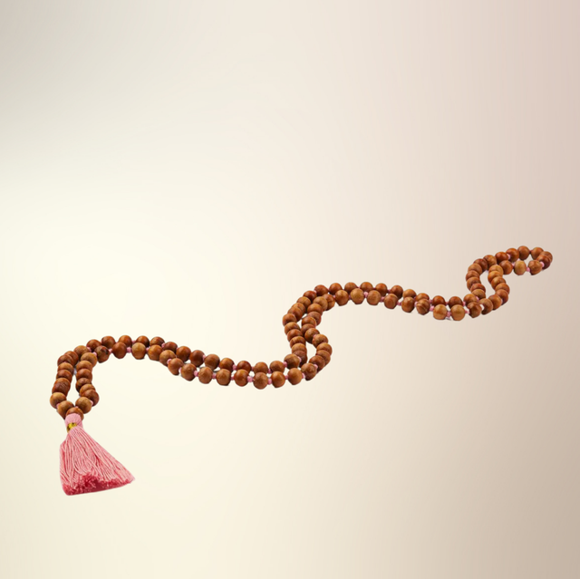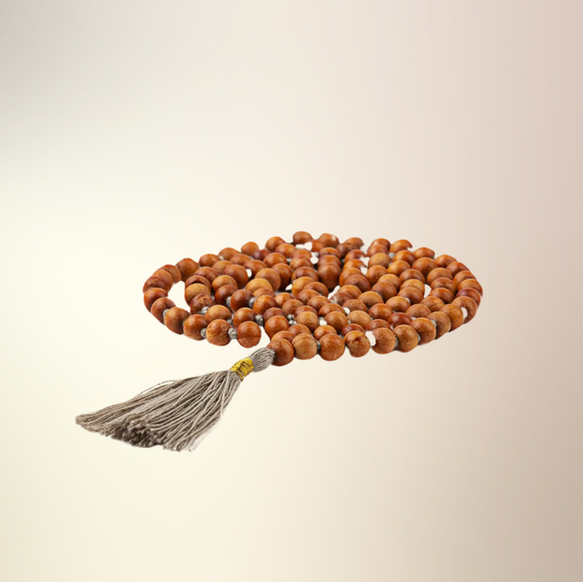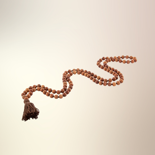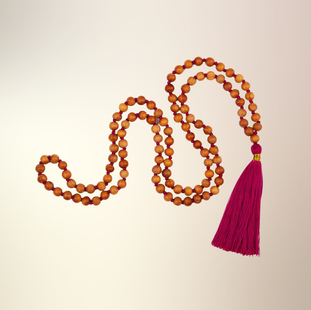 Malaen kan bæres som et dekorativt smykke i hverdagen, som en yogahalskæde eller bruges i japa mala meditation, hvor perlerne hjælper dig med at tælle mantraer og holde fokus. Den lette sandeltræsduft skaber en rolig atmosfære og understøtter en meditativ tilstand.