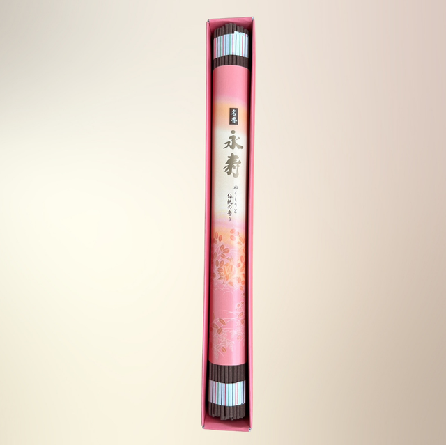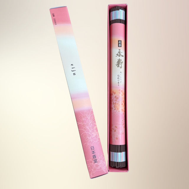 Meino Eiju er en raffineret japansk røgelse med lange, elegante pinde. Hver pind brænder i ca. 55 minutter og udsender en rolig og delikat duft af sandeltræ, der understøtter koncentration, fordybelse og indre balance. Perfekt til meditation, yoga eller som daglig energirenser i hjemmet. Den lange brændetid gør den særlig velegnet til ceremonielle stunder og længere praksis.