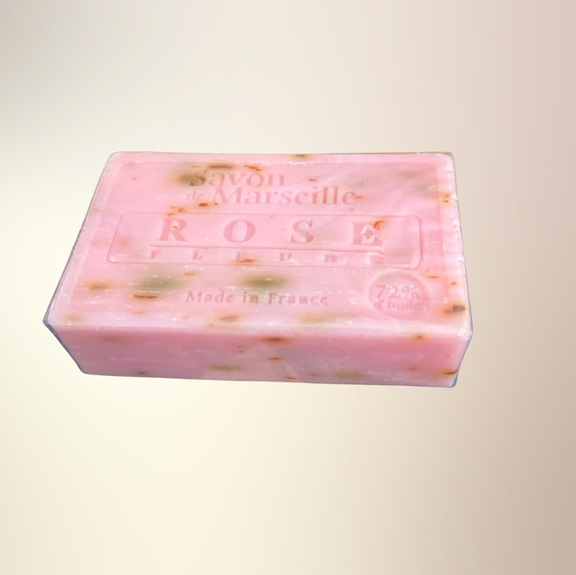 En klassisk, håndlavet Marseille-sæbe med rosenduft – skabt efter traditionelle metoder i Sydfrankrig. Sæben er baseret på vegetabilske olier og fri for syntetiske tilsætningsstoffer, hvilket gør den velegnet til daglig brug for både hænder og krop. Rosenduften er blid og romantisk, og giver en følelse af velvære og mild luksus. Kan også bruges som opfriskende dekorationsduft på fx. badeværelset.